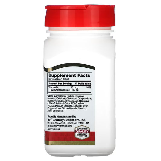 21st Century, Chewable Vitamin D3, Orange, 100 mcg (400 IU), 110 Tablets