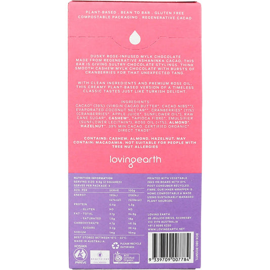 Loving Earth Turkish Rose Cashew Mylk Chocolate With Cranberries 11x80g