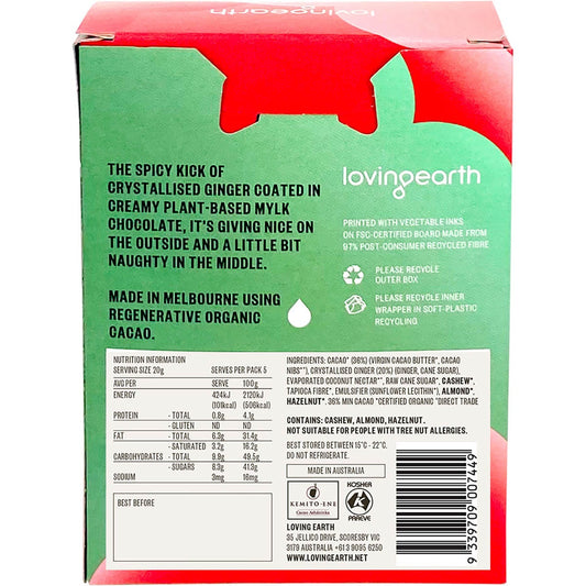 Loving Earth Mylk Chocolate Ginger Coated Crystalised Ginger 6x100g