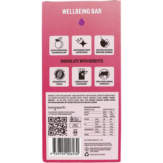 Loving Earth Superfood Chocolate Lemongrass, DavidsonPlum, Gubinge 11x70g