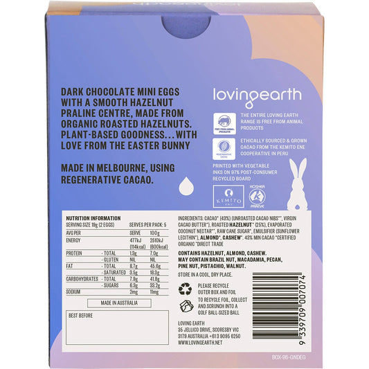 Loving Earth Hazelnut Praline Eggs Dark Chocolate 7x95g