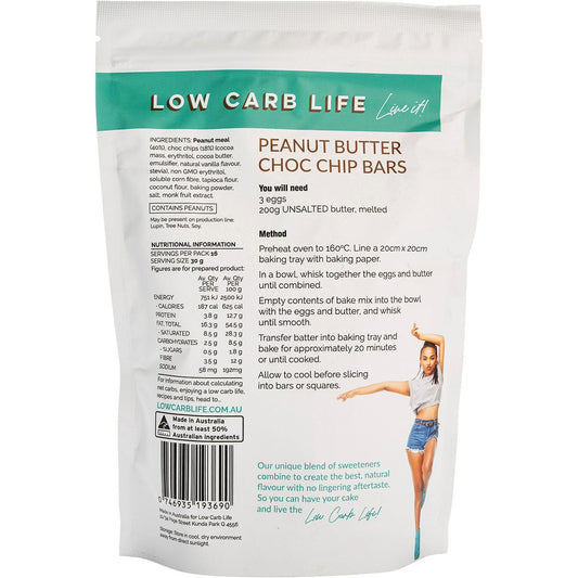 Low Carb Life Peanut Butter Choc Chip Bars Keto Bake Mix 300g