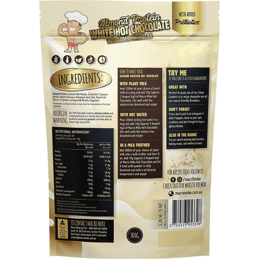 MACRO MIKE Protein White Hot Chocolate Almond with Probiotics 300g