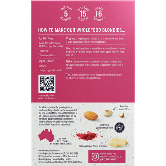 Mt. Elephant Wholefood Blondie Mix Raspberry & Whyte Choc 350g