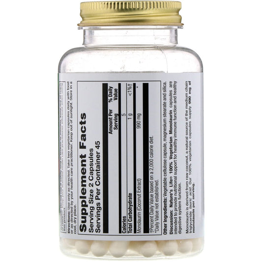 Nature's Life, Monolaurin, 90/180 Vegetarian Capsules