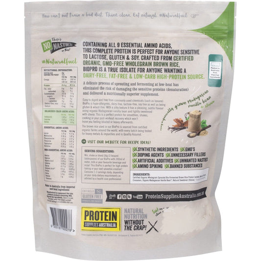 Protein Supplies Australia BioPro Sprouted Brown Rice Vanilla & Cinnamon 500g