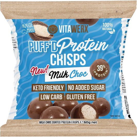 Vitawerx Puff'd Protein Crisps Milk Choc 10x60g - Vitawerx