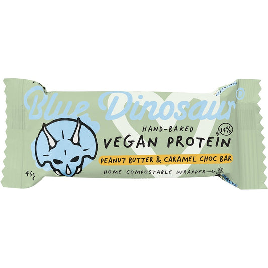 Blue Dinosaur Hand-Baked Vegan Protein Bar PB & Caramel Choc 12x45g