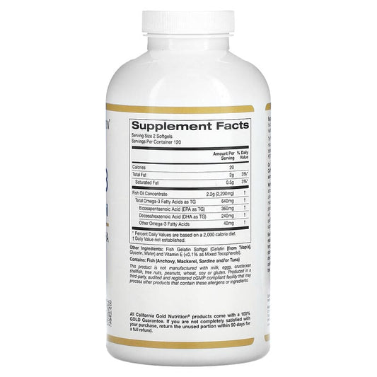 California Gold Nutrition, Omega-3 Premium Fish Oil, 180 EPA / 120 DHA