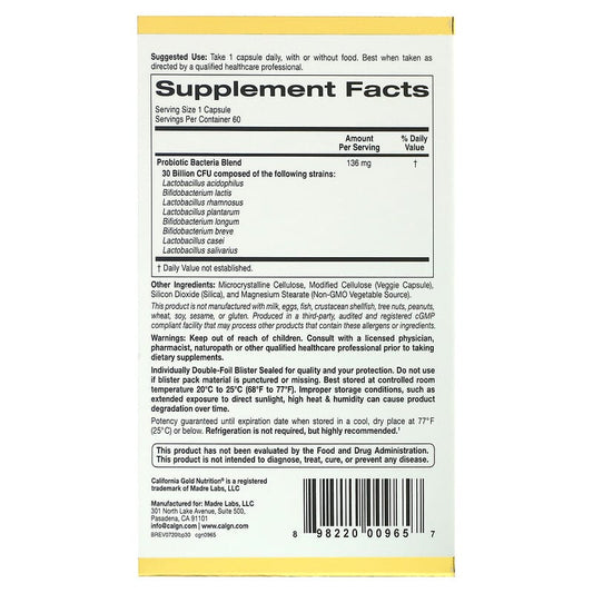 California Gold Nutrition, LactoBif Probiotics