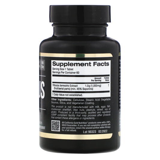 California Gold Nutrition, Tribulus, Standardized Extract, Minimum 45% Saponins, 1,000 mg, 60 Tablets