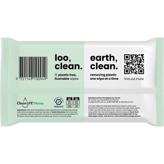 CleanLIFE Loo Clean Flushable Plastic Free Wipes 15pk - CleanLIFE