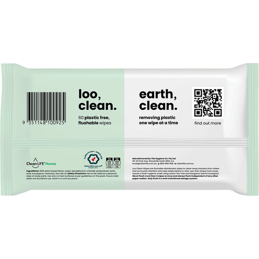 CleanLIFE Loo Clean Flushable Plastic Free Wipes 60pk - CleanLIFE