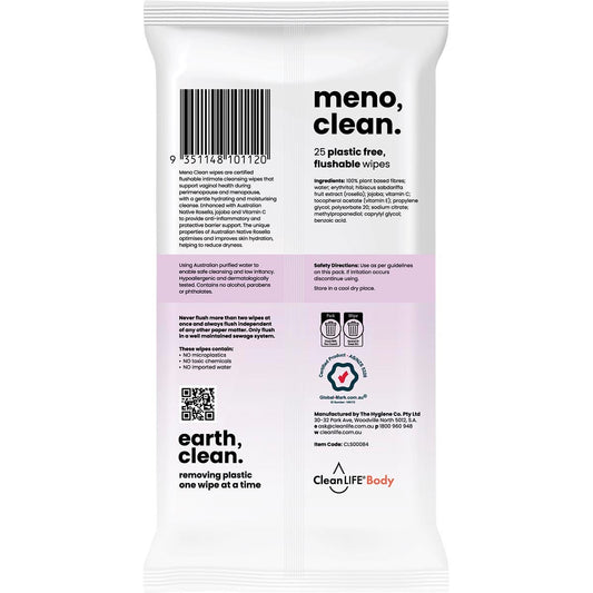 CleanLIFE Meno Clean Wipes Flushable Plastic Free Wipes 25pk - CleanLIFE