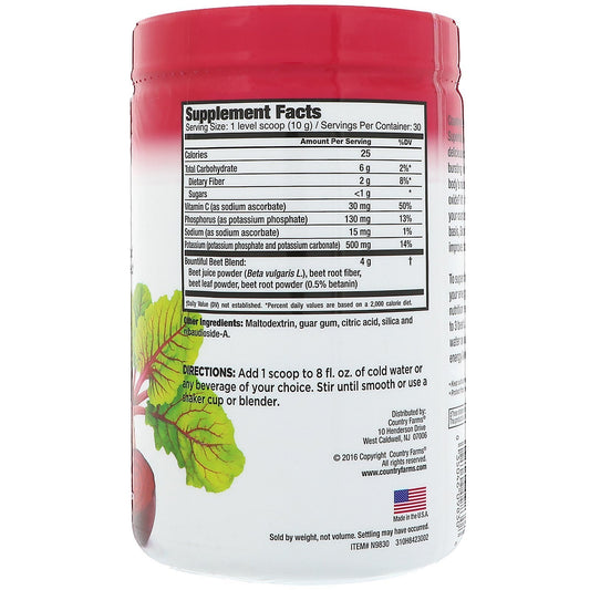 Country Farms, Bountiful Beets, The Circulation Superfood, Delicious Natural Flavor, 10.6 oz (300 g)