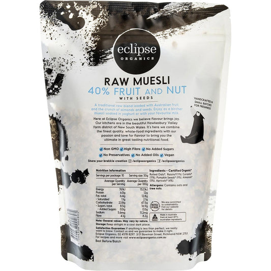 Eclipse Organics Organic Raw Muesli 40% Fruit and Nut 500g