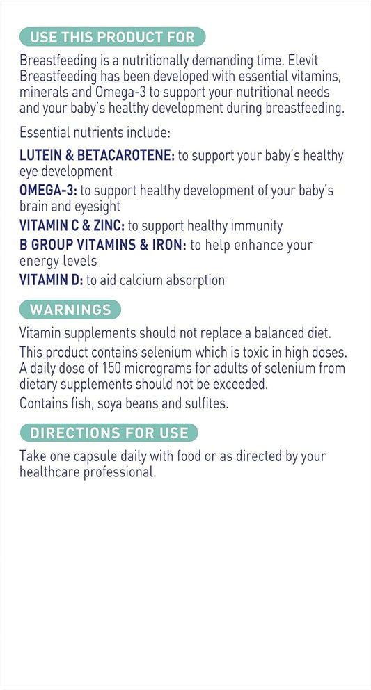 Elevit Breastfeeding Multivitamin with Iron, Omega 3 and Vitamin B Complex to supports Mum's Increased Nutritional Needs, Energy and Immunity, 60 Count