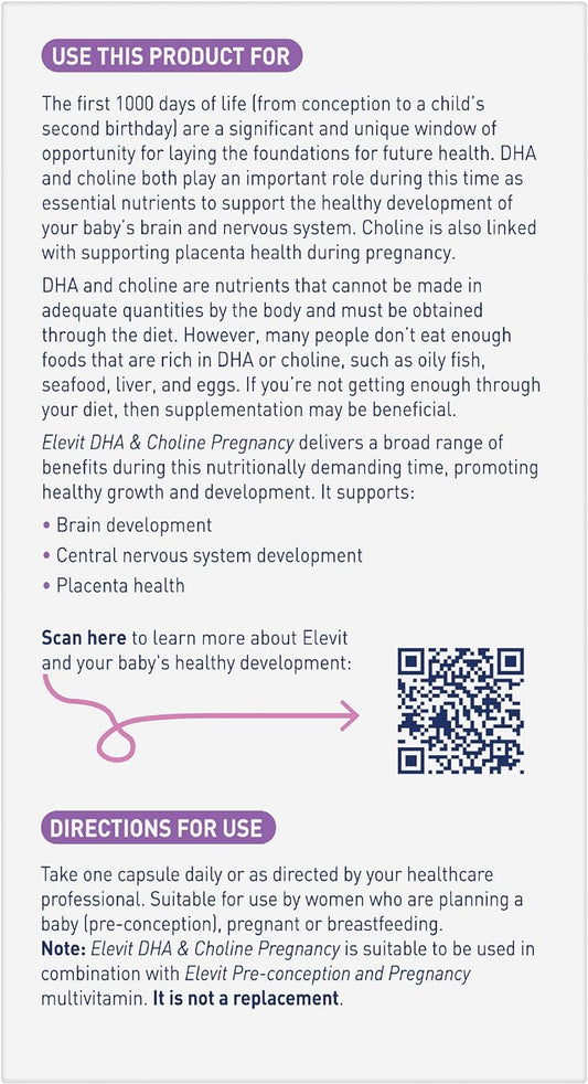 Elevit DHA + Choline Pregnancy supplement Supports Baby's Brain & Central Nervous System Development during Pregnancy, 60 Count