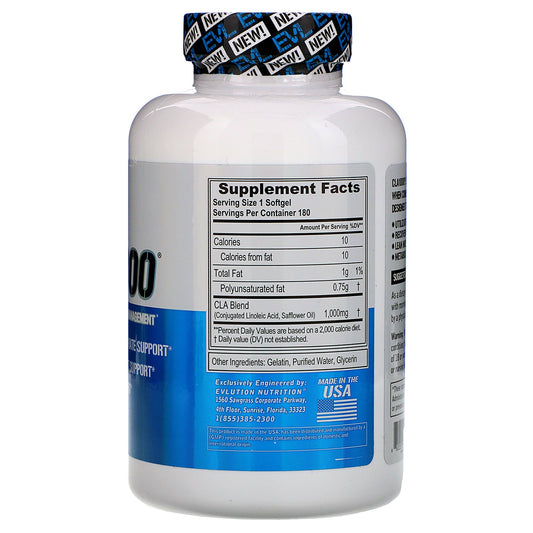 EVLution Nutrition, CLA1000, Stimulant Free Weight Management, 180 Softgels