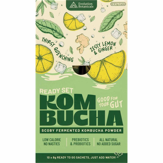 Evolution Botanicals Ready Set Kombucha Zesty Lemon & Ginger Sachets 10pk
