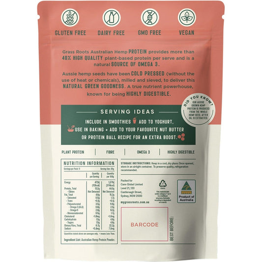 Grass Roots Australian Hemp 45 Protein Powder 350g
