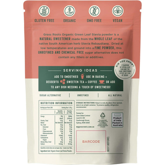 Grass Roots Organic Green Leaf Stevia Powder 250g