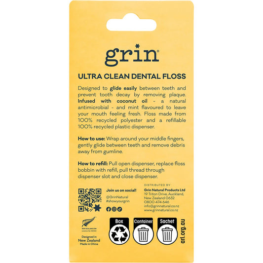 Grin Ultra Clean Floss Coconut Oil Infused 30m + Refill 8x2pk - Grin