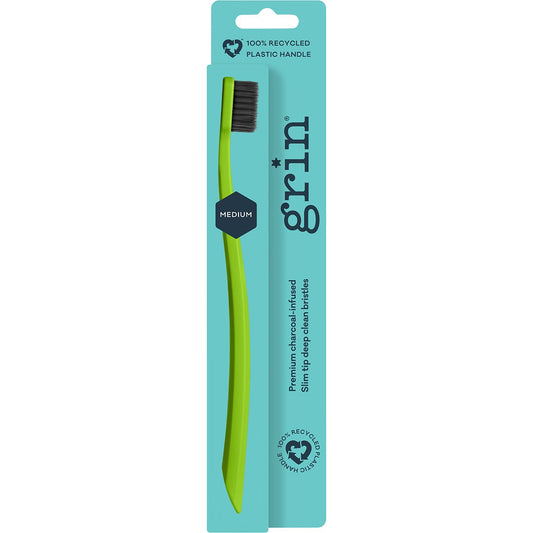 Grin 100% Recycled Toothbrush Medium Lime, Orange x8 - Grin