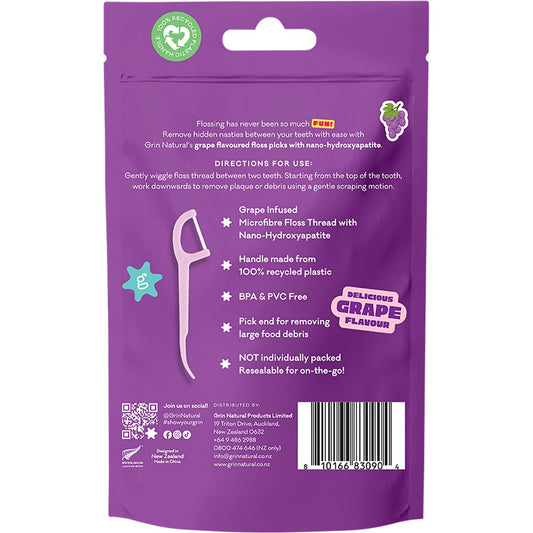 Grin Ultra Smooth Floss Picks Grape Flavoured 80pk - Grin
