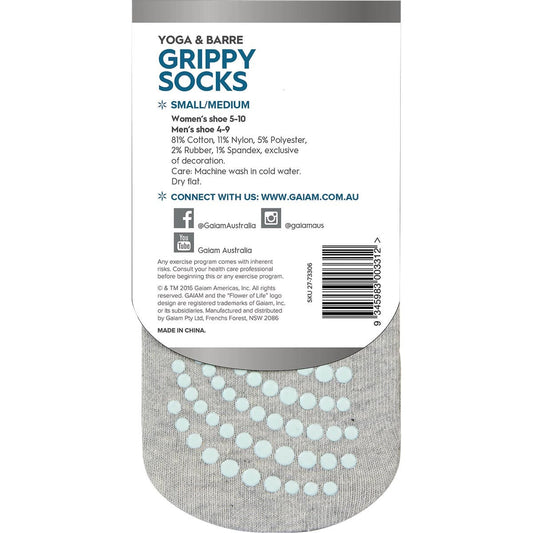 Gaiam Yoga & Barre Grippy Socks Small-Medium 1 Pair