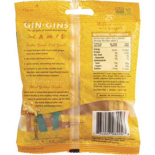 The Ginger People Gin Gins Ginger Candy Bag Chewy Spicy Turmeric 12x60g