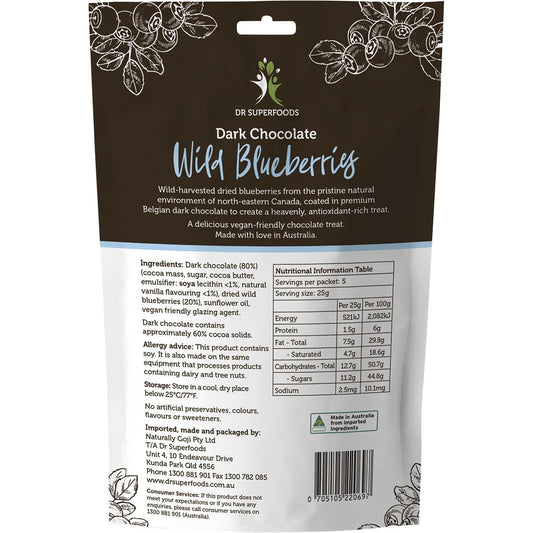 Dr Superfoods Wild Blueberries Dark Chocolate 125g