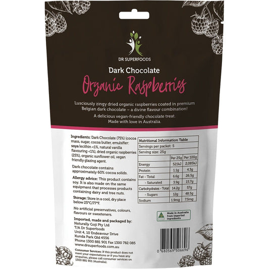 Dr Superfoods Raspberries Organic Dark Chocolate 125g