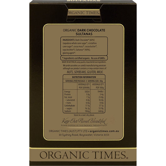 Organic Times Dark Chocolate Sultanas 150g
