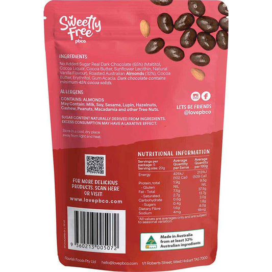 PBco Sweetly Free Almonds Dark Chocolate No Sugar Added 110g - PBco