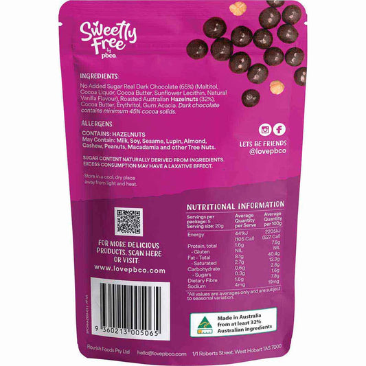 PBco Sweetly Free Hazelnuts Dark Chocolate No Sugar Added 100g - PBco