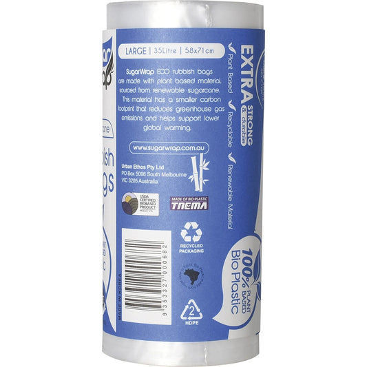 SugarWrap Eco Rubbish Bags Made from Sugarcane Large 35L 20pk