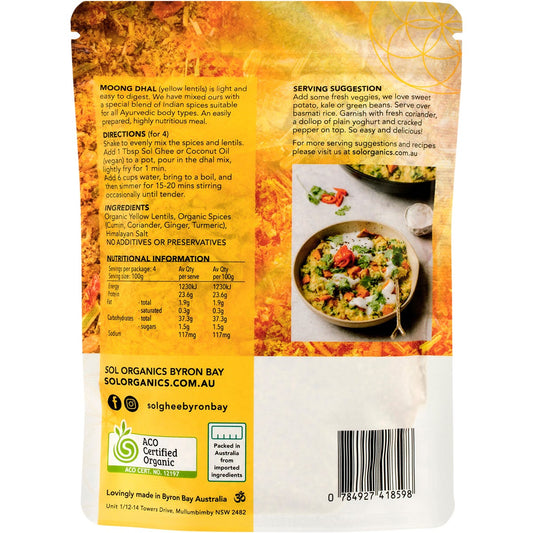 Sol Organics Moong Dhal Yellow Lentil Dhal Mix 400g