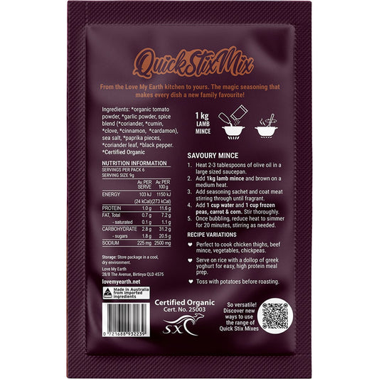 Love My Earth Quick Stix Mix Organic Recipe Base Savoury Mince 10x55g - Love My Earth
