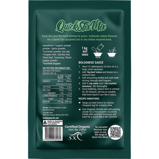Love My Earth Quick Stix Mix Organic Recipe Base Bolognese 10x45g - Love My Earth