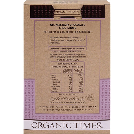 Organic Times Choc Drops Dark Couverture Drops 200g