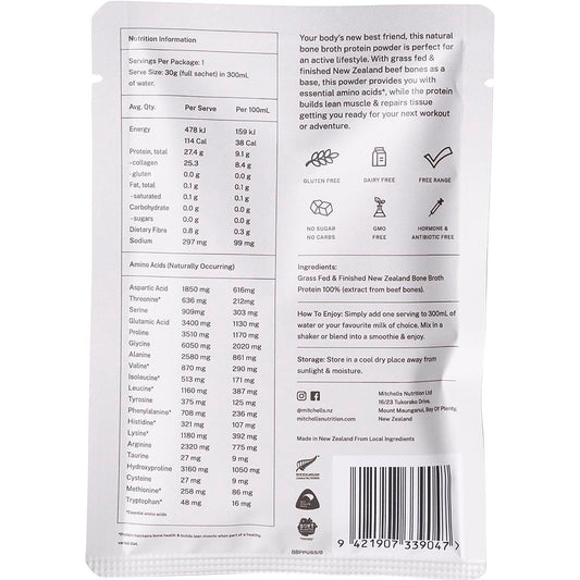 Mitchells Nutrition Bone Broth Protein Powder Unflavoured 10x30g - Mitchells Nutrition