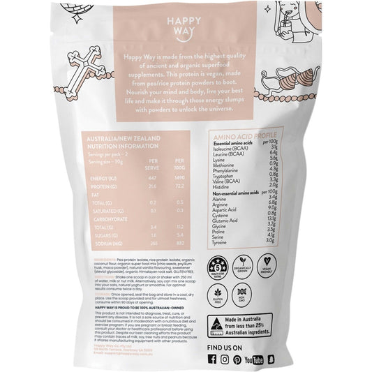 Happy Way Ashy Bines Vegan Protein Powder Choc Coconut 500g