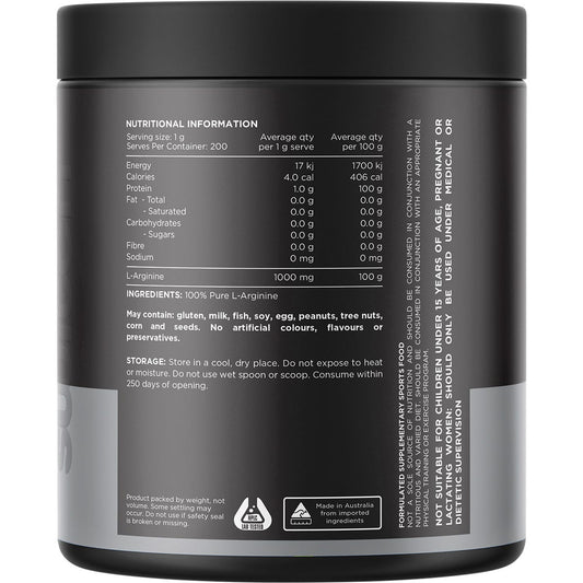 Switch Nutrition Arginine 100% Pure L-Arginine Unflavoured 200g - Switch Nutrition