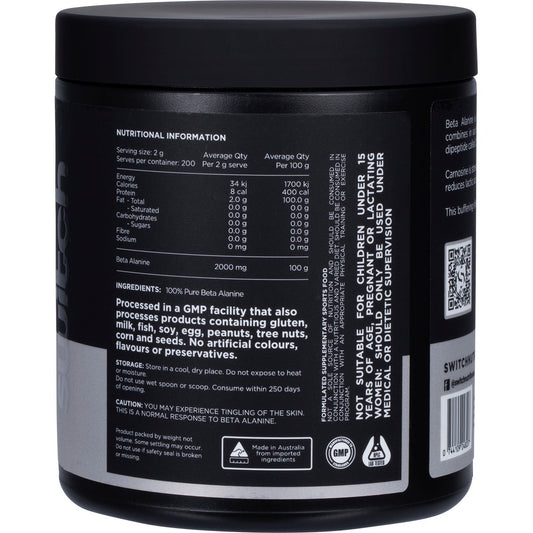 Switch Nutrition Beta Alanine Powder 100% Pure Unflavoured 400g - Switch Nutrition