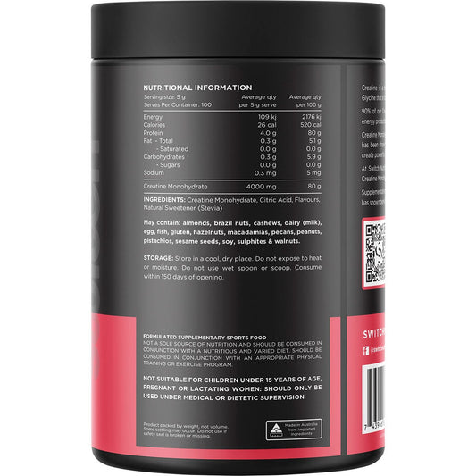 Switch Nutrition Creatine Monohydrate Refreshing Lime 500g - Switch Nutrition