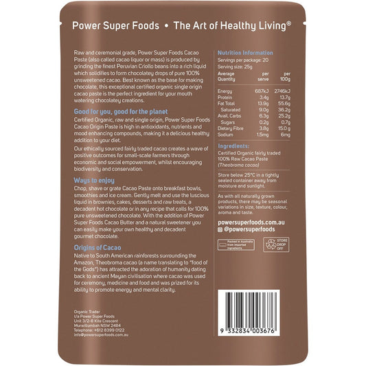 Power Super Foods Cacao Paste Buttons The Origin Series 500g