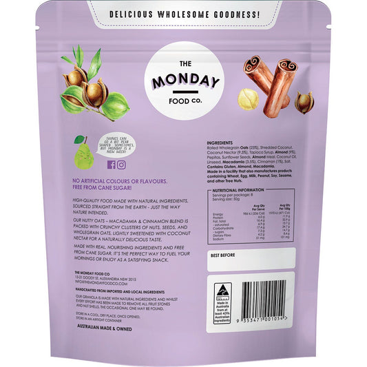 The Monday Food Co. Nutty Oats Gourmet Granola Macadamia & Cinnamon 400g - The Monday Food Co.
