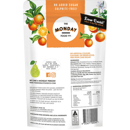 The Monday Food Co. Keto Gourmet Granola Orange Infused Crunchy Macadamia 800g - The Monday Food Co.