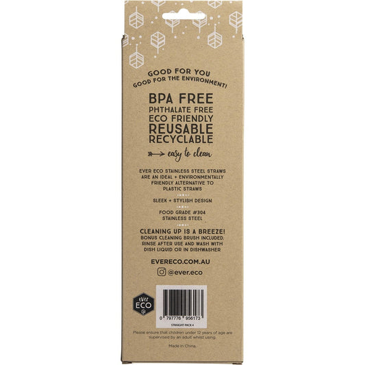 Ever Eco Stainless Steel Straws Straight Smoothie 4pk